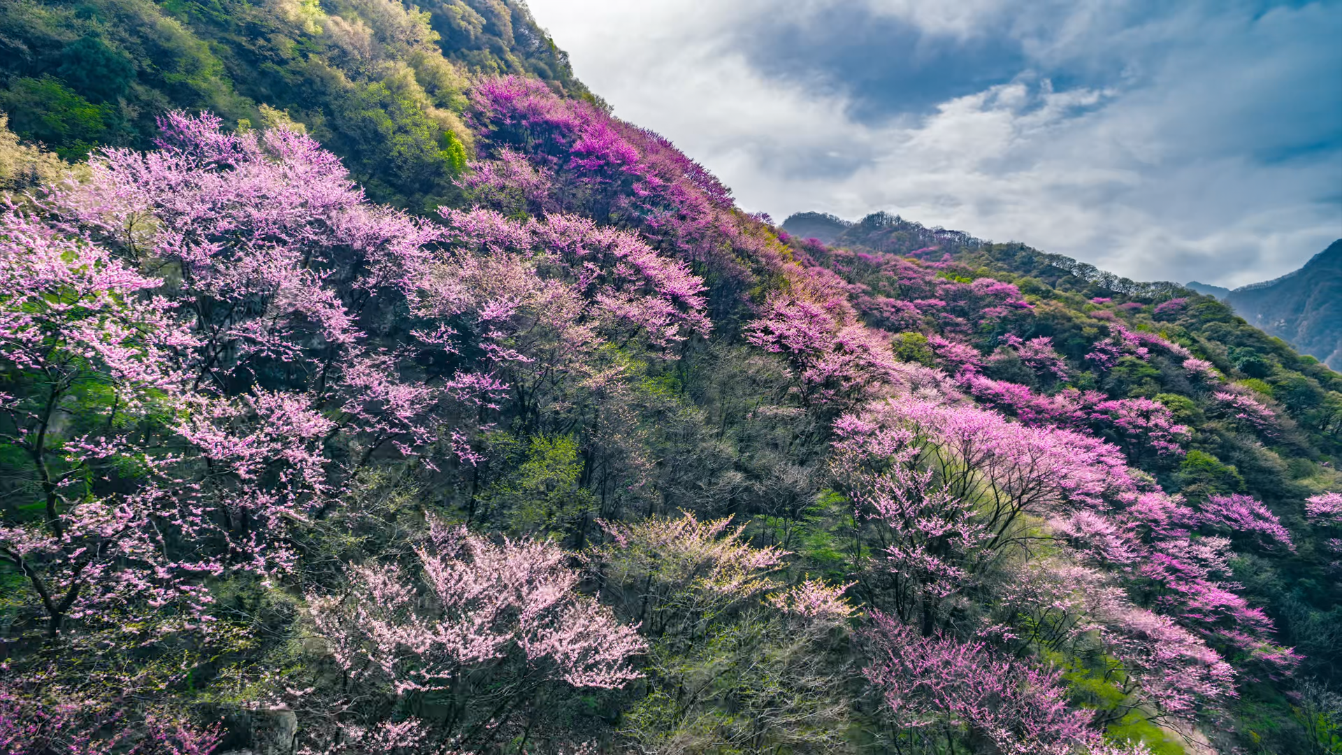 素有“天然植物基因庫(kù)”美譽(yù)的太平國(guó)家森林公園,坐擁秦嶺最大規(guī)模野生紫荊種群。每至四月,漫山遍野的紫荊花沿著山坡蜿蜒分布,形成一條壯觀的“粉色絲帶”,美不勝收。行走于景區(qū)步道,游客既可沉浸式感受萬畝花海的視覺震撼,亦可拾級(jí)而上,于山頂俯瞰全景花海,盡享秦嶺的雄渾壯闊與婉約秀美。